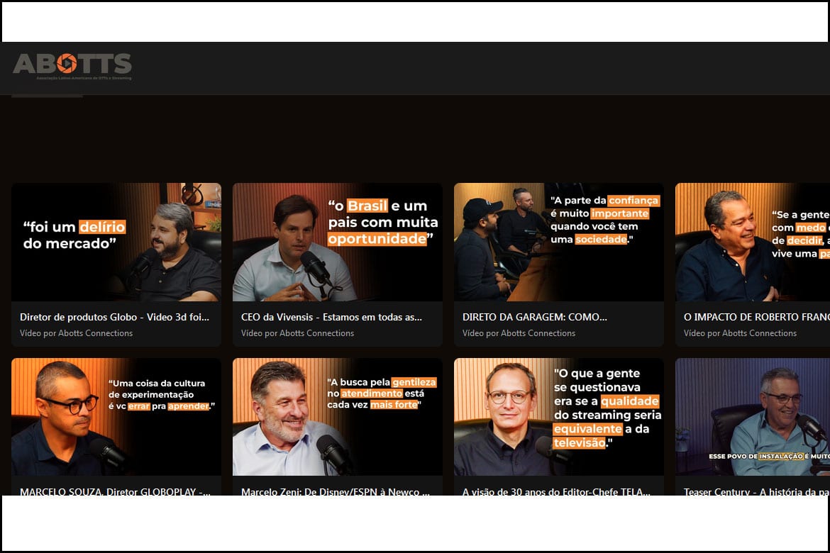 No campo de conteúdo e visibilidade de mercado, a ABOTTS revelou que, a partir de março de 2026, o ABOTTS Cast passará a contar com distribuição ampliada em novas plataformas no Brasil, Estados Unidos e Canadá, alcançando uma audiência potencial de 30 milhões de pessoas. O movimento posiciona o podcast como um dos principais hubs de conteúdo executivo sobre streaming, CTV e mídia digital na região.