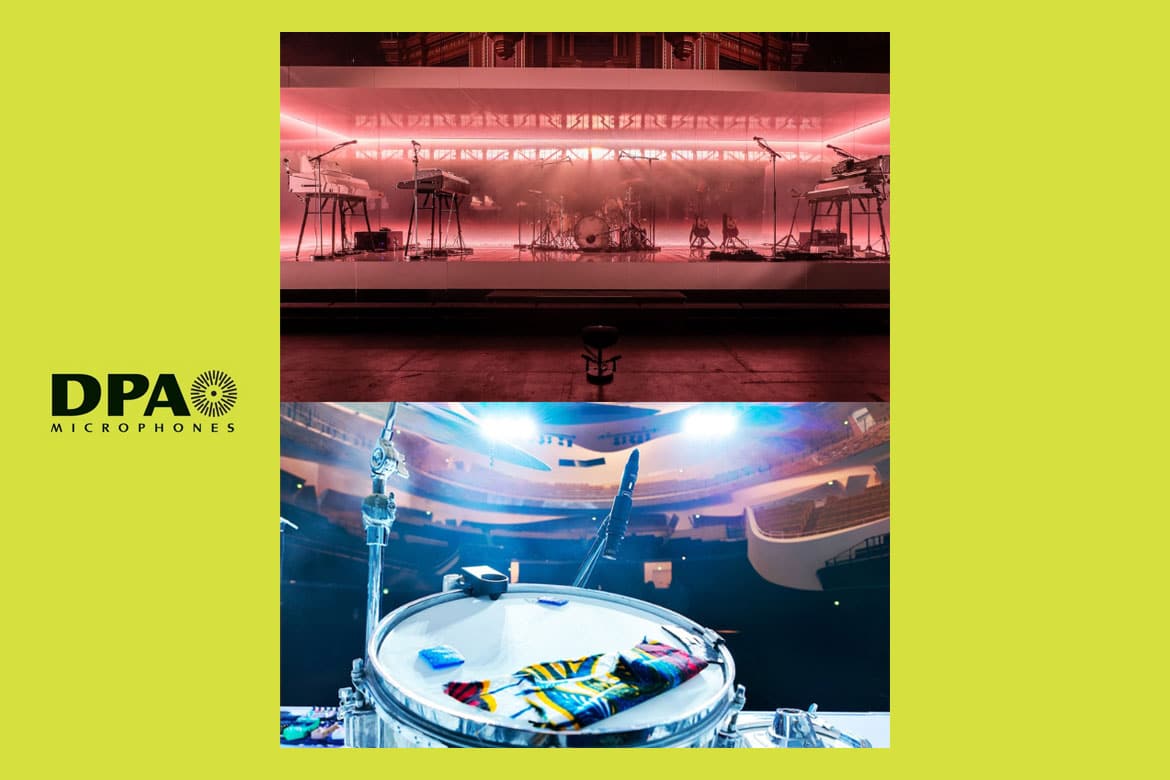 O projeto exigiu soluções criativas de microfonação, especialmente pela cenografia do palco, que recriava o ambiente íntimo do estúdio da dupla. A equipe testou diversas combinações de microfones até chegar aos modelos DPA 2012 e 4055, que se destacaram pela clareza e resposta natural. O baterista Louis ficou impressionado com a fidelidade do som captado pelos microfones, descrevendo a sensação como se estivesse ouvindo seus tambores sem microfones.