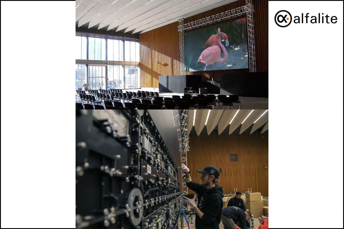 A Alfalite instalou o maior painel de LED indoor fixo da Eslovênia no Ljubljana Exhibition & Convention Centre, principal espaço de feiras e congressos do país. A estrutura foi montada na Marmorna Hall e ocupa 40 metros quadrados, estabelecendo novo parâmetro para apresentações de grande porte no setor MICE local.