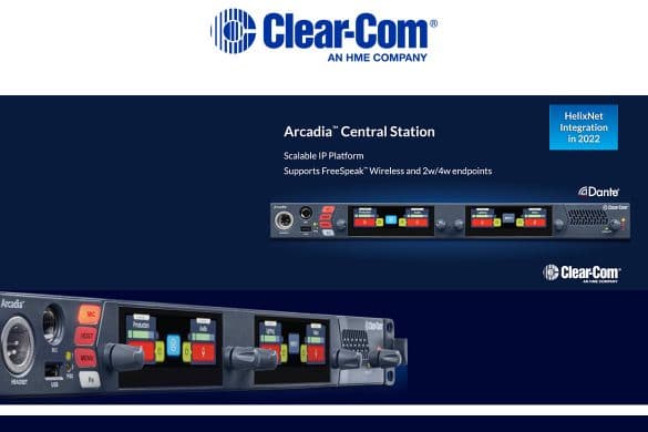 A Clear-Com anunciou a inovadora Arcadia Central Station, plataforma IP escalonável de última geração que integra todos os sistemas partyline, com e sem fio, incluindo a família FreeSpeak de soluções digitais sem fio e HelixNet Digital Partyline. O sistema pode licenciar até 96 portas IP em um único dispositivo RU, com novos complementos de licenciamento previstos no futuro, tornando a Arcadia a peça central de intercomunicação para uma vasta gama de aplicativos melhor servidos por fluxos de trabalho do partyline.