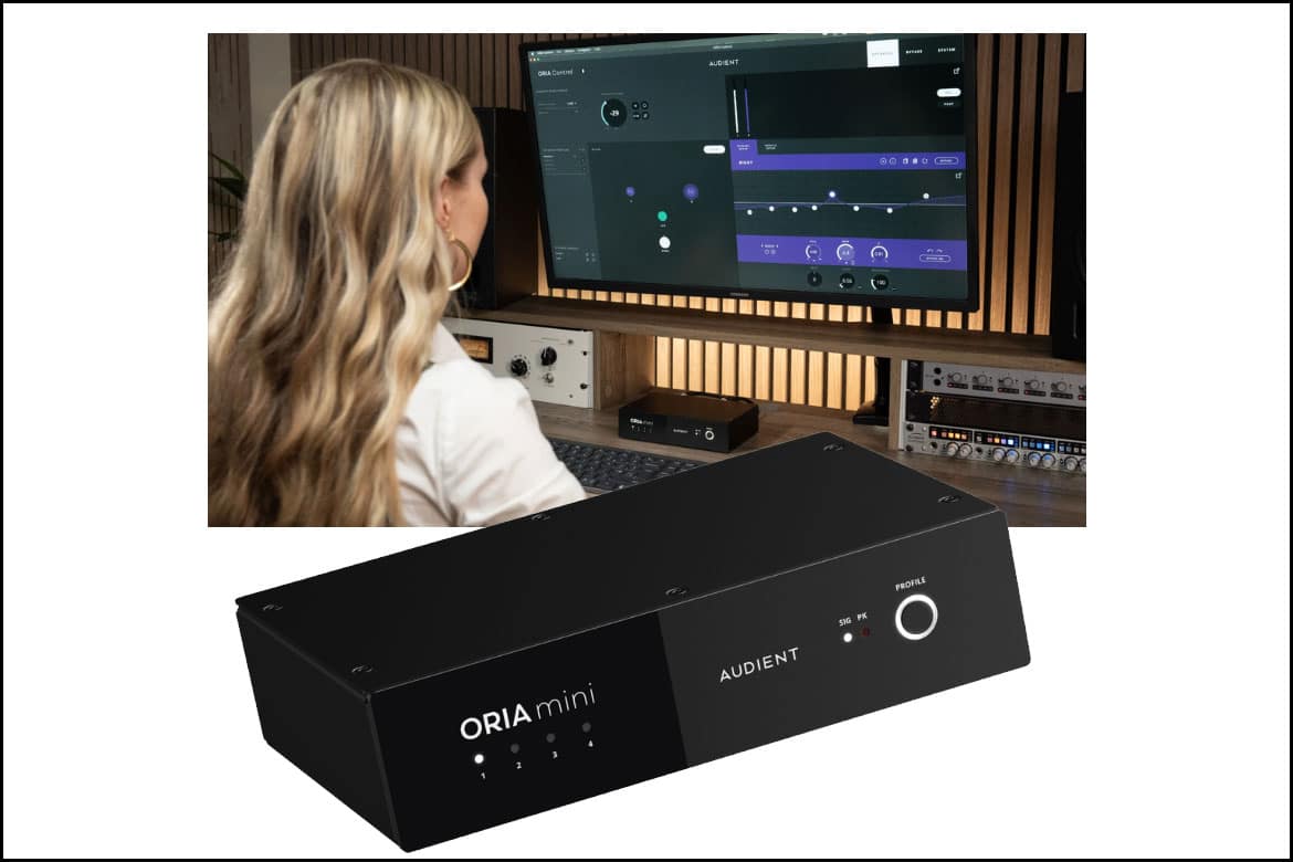 A marca britânica Audient, em colaboração com a desenvolvedora de tecnologia de áudio Sonarworks, anunciou o ORIA Mini, um sistema compacto de correção acústica projetado para oferecer a produtores musicais, engenheiros de som e donos de estúdios um ambiente de mixagem confiável. O dispositivo realiza calibração acústica de nível profissional em hardware dedicado, eliminando a necessidade de softwares adicionais e evitando sobrecarga de processamento ou atrasos no áudio.