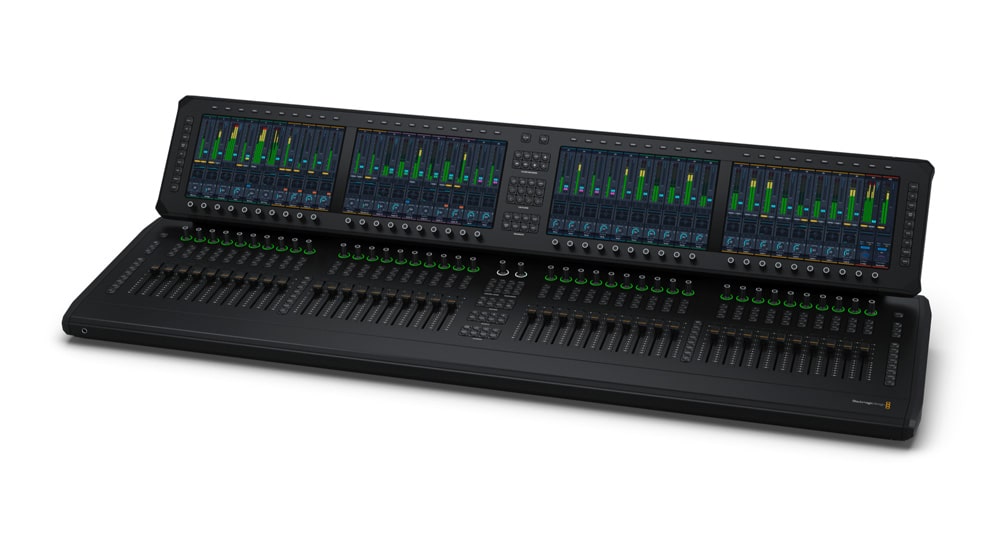 Projetados com engenheiros de som profissionais, os modelos Fairlight Live Audio Panel simplificam o trabalho, agindo como uma extensão natural do software. O design intuitivo e baseado em tarefas posiciona os controles necessários na ponta dos dedos. Uma tela de toque grande para cada grupo de 10 faders garante que os clientes vejam tudo que está acontecendo em uma exibição gráfica. Os clientes podem visualizar informações sobre a faixa de canais, níveis, EQ, processamento de dinâmica, interfaces de plugin e muito mais. As três opções disponíveis são ideais para estúdios caseiros, pequenas ilhas de áudio ou transmissões ao vivo de grande porte.