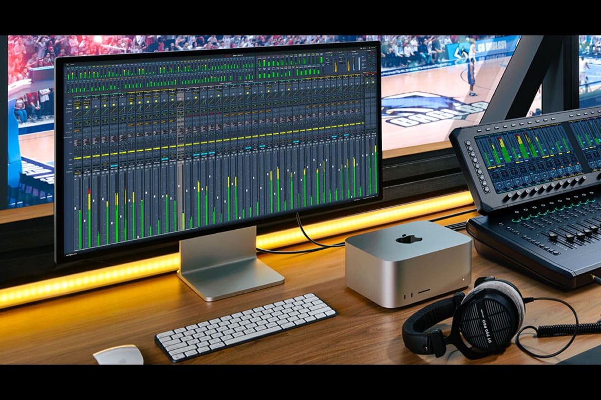 Mixer de áudio avançado baseado em software com suporte a transmissões SMPTE 2110 e fluxos de trabalho imersivos, redundância completa e plugins de terceiros.