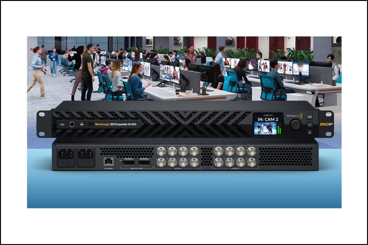 A Blackmagic Design anunciou o Blackmagic SDI Expander 8x12G, um novo conversor que permite conectar equipamentos SDI 12G aos mais recentes sistemas IP SMPTE 2110 com Ethernet 100G. O conversor suporta oito conexões SDI 12G bidirecionais e conta com duas conexões Ethernet 100G independentes, permitindo redundância SMPTE 2022-7.