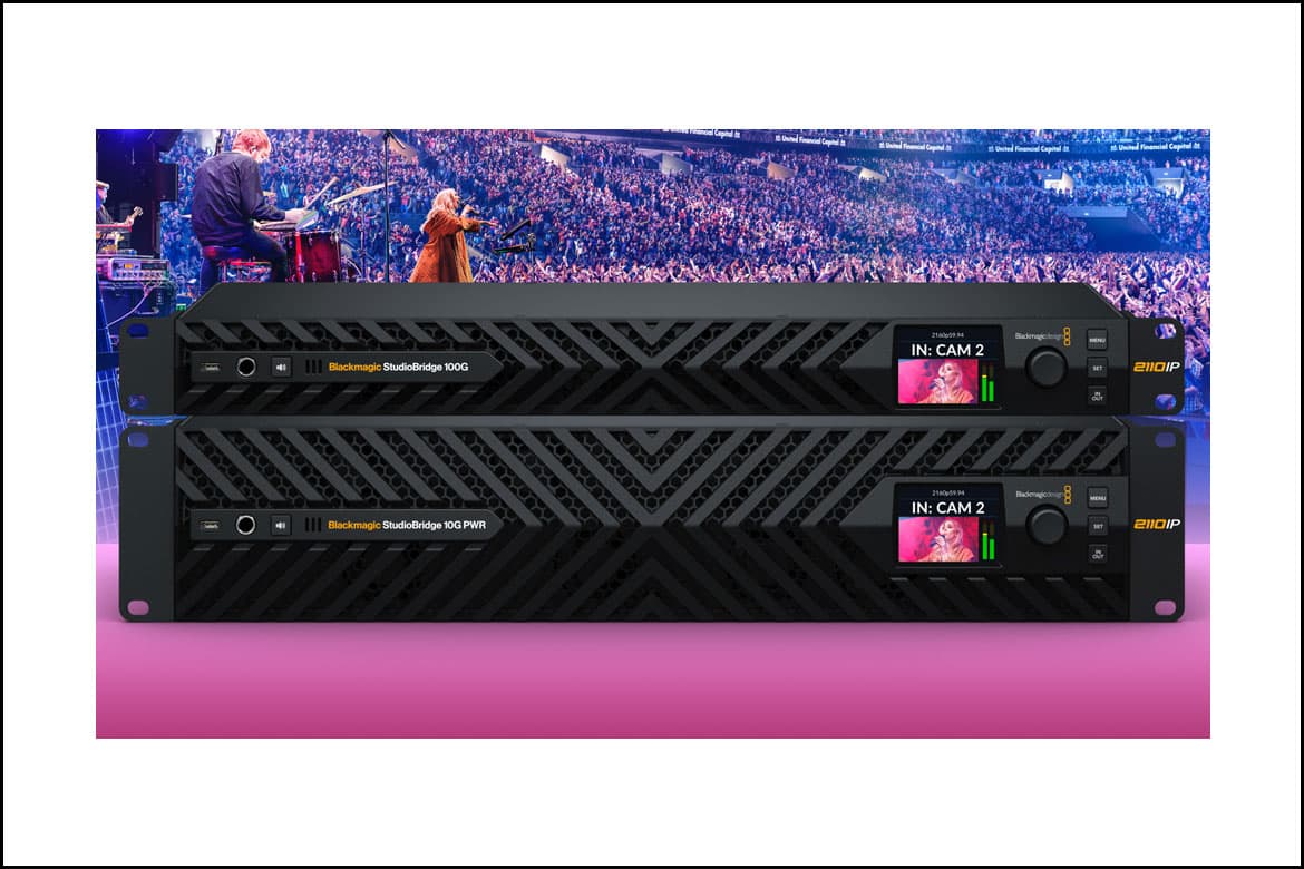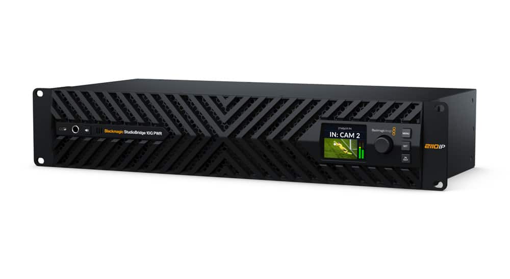 A Blackmagic Design anunciou o Blackmagic StudioBridge 10G PWR, que permite interligar oito conexões SMPTE 2110 via Ethernet 10G independentes a sistemas Ethernet 100G modernos com redundância SMPTE 2022-7 É possível combinar até oito câmeras ou conversores em um sistema de vídeo IP Ethernet 100G. Caso os dispositivos Ethernet 10G utilizem uma única conexão, o Blackmagic StudioBridge 10G PWR também faz a interligação para duas conexões Ethernet 100G, criando um sistema broadcast redundante. Além disso, o conversor conta com quatro fontes de alimentação internas independentes, fornecendo até 90 W de PoE++ para cada conexão Ethernet 10G.