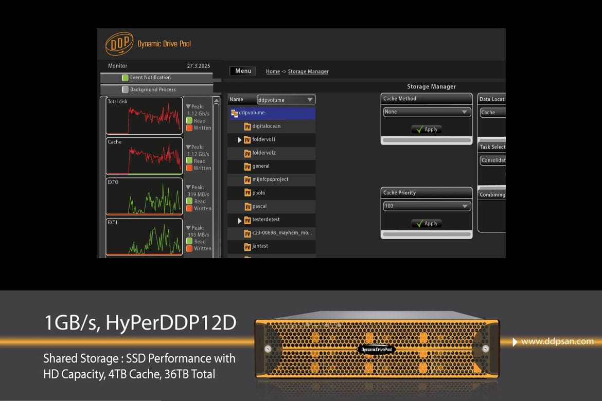 A DDP está apresentando uma inovação tecnológica no armazenamento compartilhado para a indústria de mídia e entretenimento: o Project Caching. Integrado ao sistema de arquivos A/V FS da empresa, esse recurso exclusivo permite o armazenamento em cache inteligente de projetos com base em sua estrutura de pastas e arquivos, oferecendo uma solução extremamente rápida e econômica para fluxos de trabalho baseados em projetos.