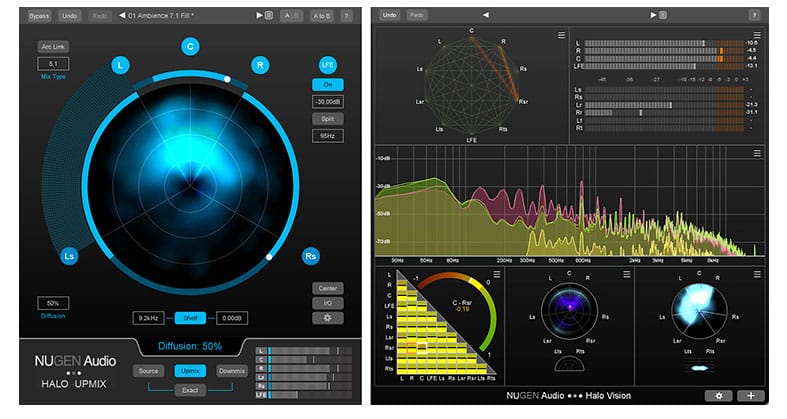 Trabalhando a partir de sua sala de mixagem Dolby Atmos personalizada, ele se tornou um dos principais nomes na conversão de catálogos de grandes estúdios para formatos imersivos como Dolby Atmos e Dolby Vision. No centro de seu fluxo de trabalho estão os plug-ins da NUGEN Audio, em especial o Halo Upmix, que considera essencial para modernizar trilhas sonoras clássicas com fidelidade. “O Halo Upmix é a base do que faço”, afirma. “Ele é fundamental, especialmente para a mixagem de músicas e ambientes. Oferece um som mais cheio e suave do que muitas outras ferramentas semelhantes.”