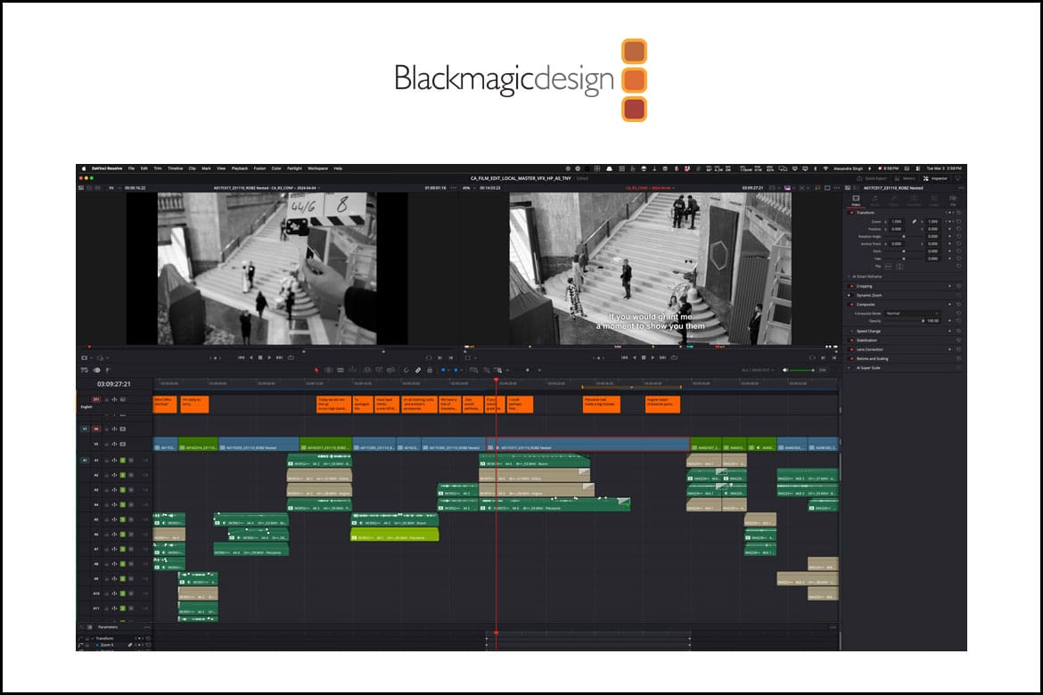 Ao decidirem desde o início usar o DaVinci Resolve Studio em todo o fluxo de trabalho, Singh e Musteata começaram editando seus vídeos de pré-visualização na plataforma, trabalhando em linhas de tempo diferentes e usando a Blackmagic Cloud para compartilhá-las com facilidade.