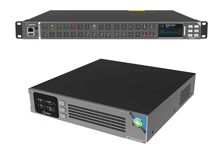 Pensado para crescer conforme as necessidades do projeto, o AVX24-4 pode ser interligado a outras unidades por meio de conexões 10GbE SFP+ e gerenciado de forma centralizada pelo KiloLink Server. Essa arquitetura permite implantações em larga escala, com visibilidade unificada, configuração simplificada e monitoramento contínuo, transformando infraestruturas IP complexas em sistemas mais acessíveis e alinhados às rotinas de profissionais de audiovisual.