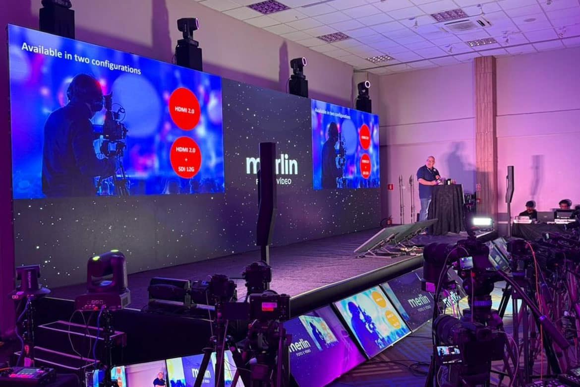 Com público lotando o espaço e a necessidade de controlar o fluxo de visitantes, a etapa de Cuiabá do Merlin Road Show confirmou mais uma vez por que é o maior evento itinerante da indústria audiovisual na América Latina. A ocasião teve um sabor especial: a comemoração dos 40 anos da Merlin, distribuidora que se consolidou como referência no fornecimento de soluções profissionais para o setor e como distribuidor mestre do LiveU Solo PRO no Brasil e na região.