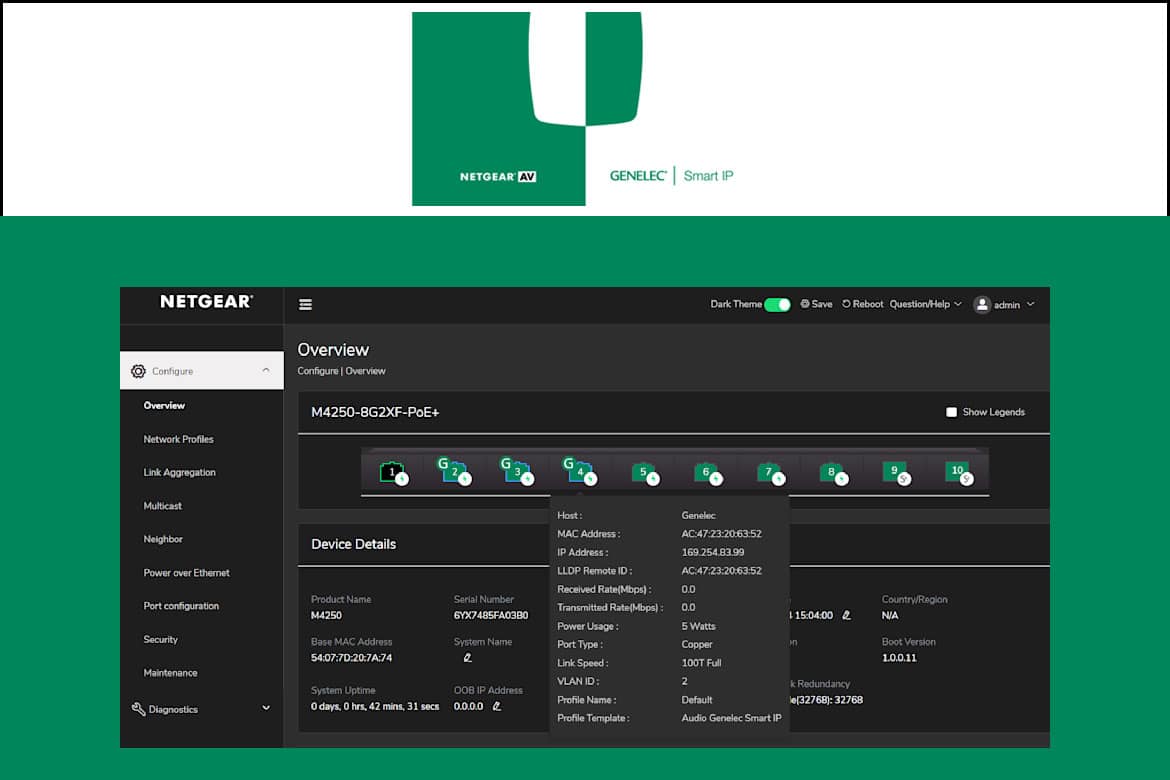 A NETGEAR anunciou a inclusão de um perfil pré-programado em sua linha de switches gerenciáveis Pro AV, projetado para facilitar a integração das caixas acústicas Genelec Smart IP em diferentes aplicações profissionais. A atualização de firmware permite que instaladores configurem sistemas Smart IP em poucos cliques, aplicando automaticamente parâmetros otimizados para áudio em rede Dante, com maior estabilidade, qualidade sonora superior e redução significativa no tempo de instalação.