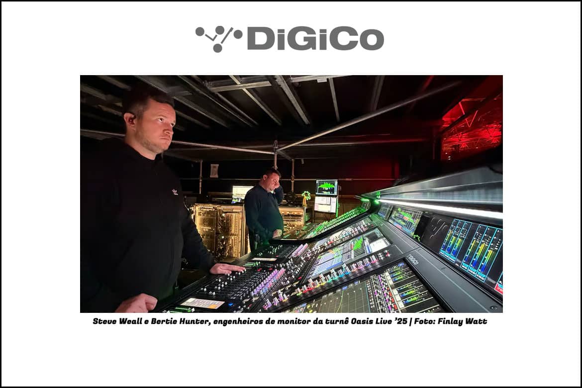 Apesar da proximidade, as operações são independentes para garantir a cada Gallagher um ambiente de monitores próprio. Hunter destaca que ambos precisam definir o ganho de cada canal em conjunto, e que essa colaboração foi facilitada pela operação lado a lado. Ele também recebe stems de efeitos vindos da mixagem de frente de house para integrar delays e detalhes vocais de Liam, mantendo tudo sincronizado. A infraestrutura da DiGiCo permite que cada engenheiro configure o fluxo de sinais da forma mais eficiente para o show.