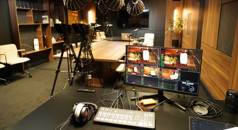 Inicialmente, a ideia era equipar os estúdios com câmeras full frame, refletindo a vivência de du Boys em produções tradicionais. No entanto, à medida que os espaços foram sendo finalizados, tornou-se evidente que um sistema de câmeras de estúdio, totalmente integrado às mesas de produção ao vivo ATEM Mini Extreme ISO, seria mais adequado para garantir consistência, agilidade e maior volume de produção. A equipe técnica do Greenbull Group recomendou uma análise aprofundada do ecossistema da Blackmagic Design, principalmente pela integração entre câmeras, switchers e controle de áudio.