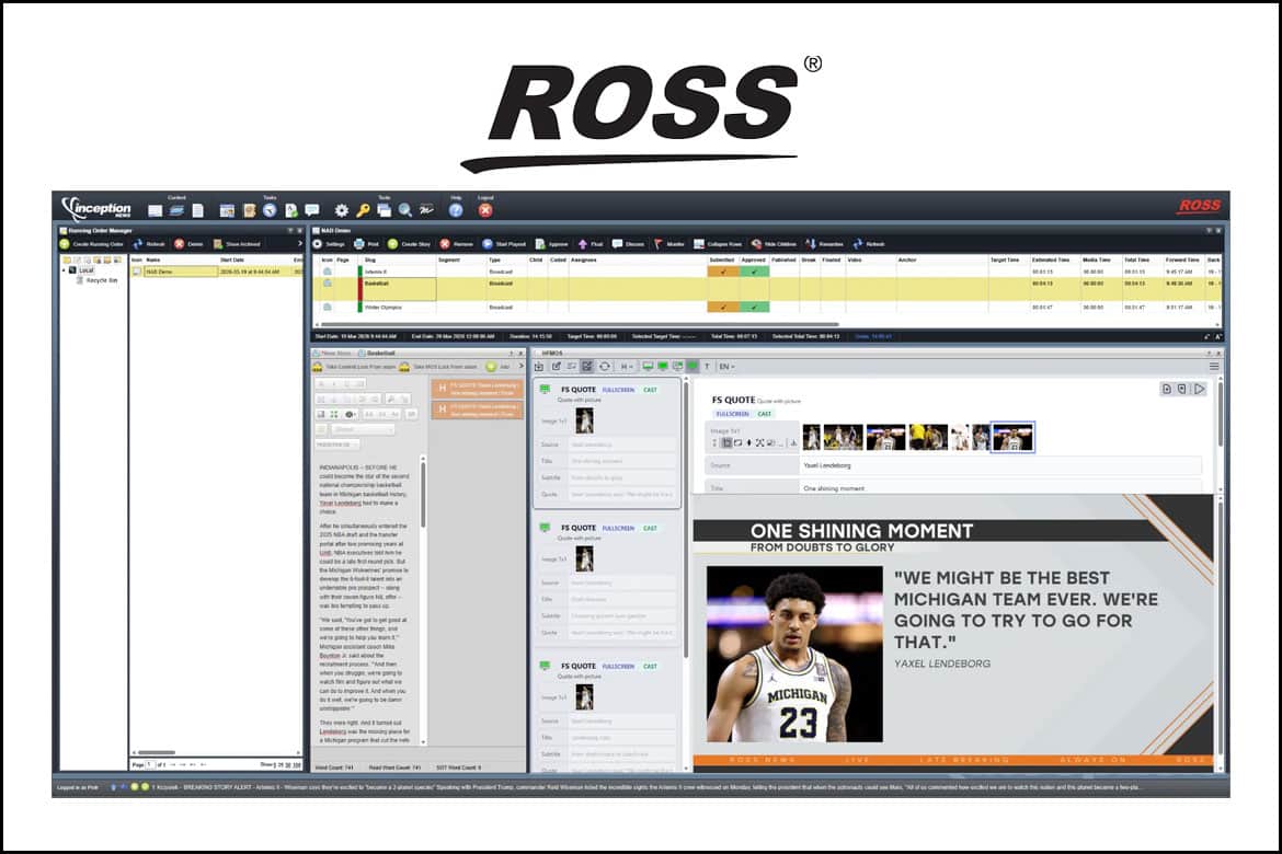 A integração inicial contempla as soluções XPression, Inception e Streamline, com planos de expansão para outras ferramentas do portfólio da Ross Video.