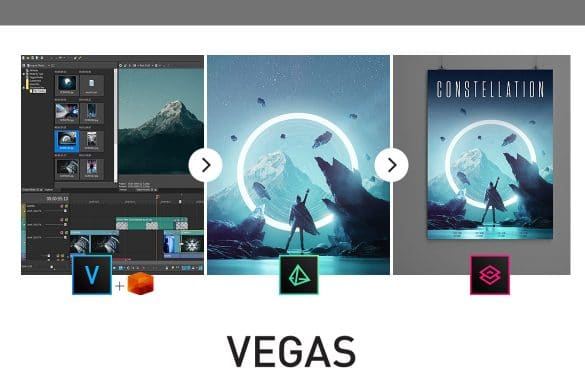 O VEGAS Image é um aplicativo de edição e composição de imagens de nível profissional que permite camadas ilimitadas (independentes), nada inserido e os dados RAW são mantidos intactos. Não é necessário adicionar outros aplicativos, como Photoshop, já que o Vegas Creative Software faz com que o editor permaneça trabalhando no VEGAS Post.